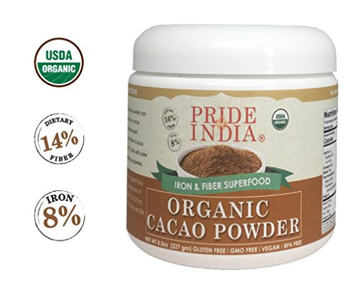 Pride Of India - Organic Cacao Powder (From premium Criollo Beans) - Iron & Fiber Rich Superfood - 8oz (227gm) Jar Pride Of India - Organic Cacao Powder (From premium Criollo Beans) - Iron & Fiber Rich Superfood - 8oz (227gm) Jar Pride Of India - Organic Cacao Powder (From premium Criollo Beans) - Iron & Fiber Rich Superfood - 8oz (227gm) Jar