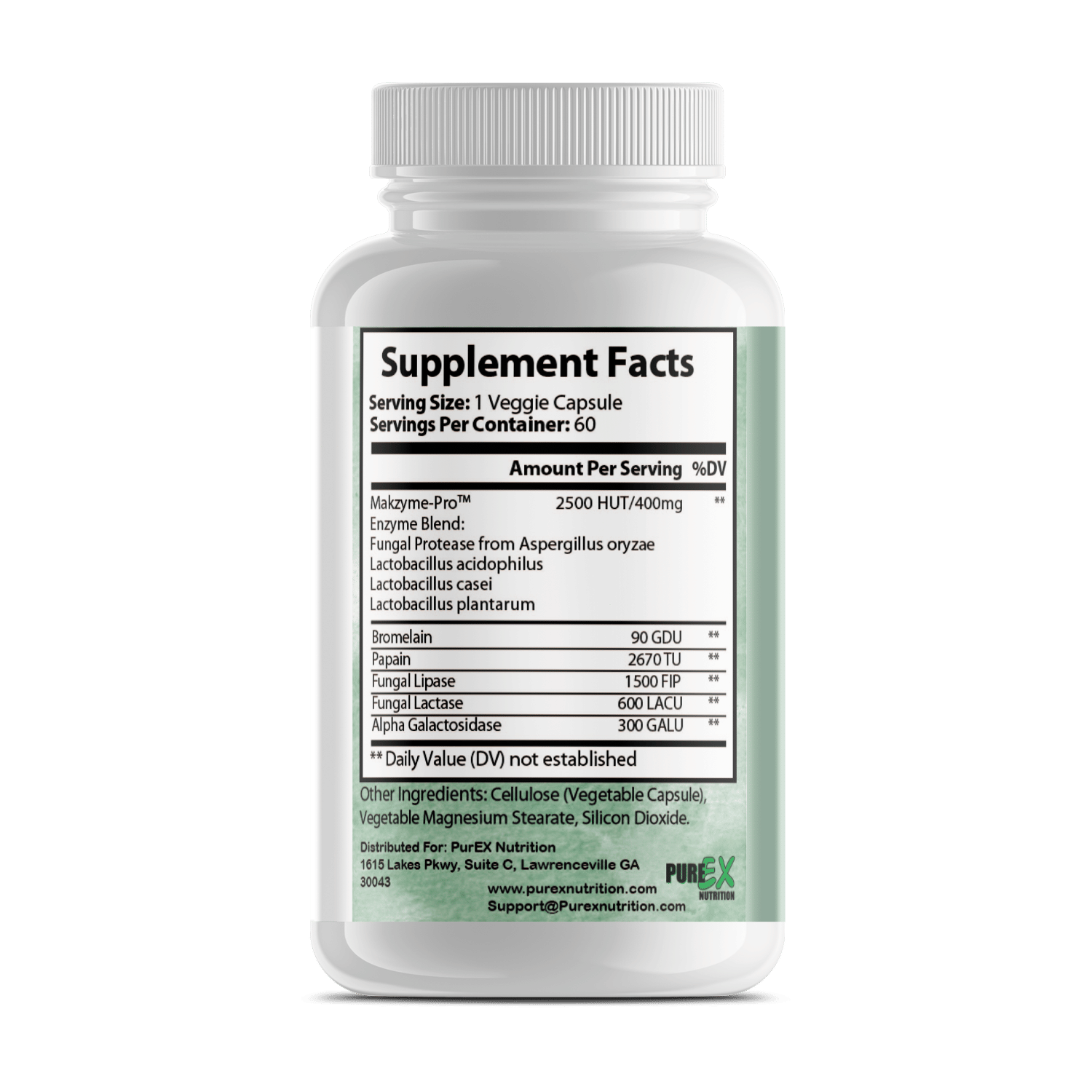 Pure Digestion enzymes come complete for complete digestion support. We put lactase, lipase, papain for the protease, bromelain another proteolytic(digest protein) enzyme and the super powerful Makzyme Pro ™ Enzyme Blend.