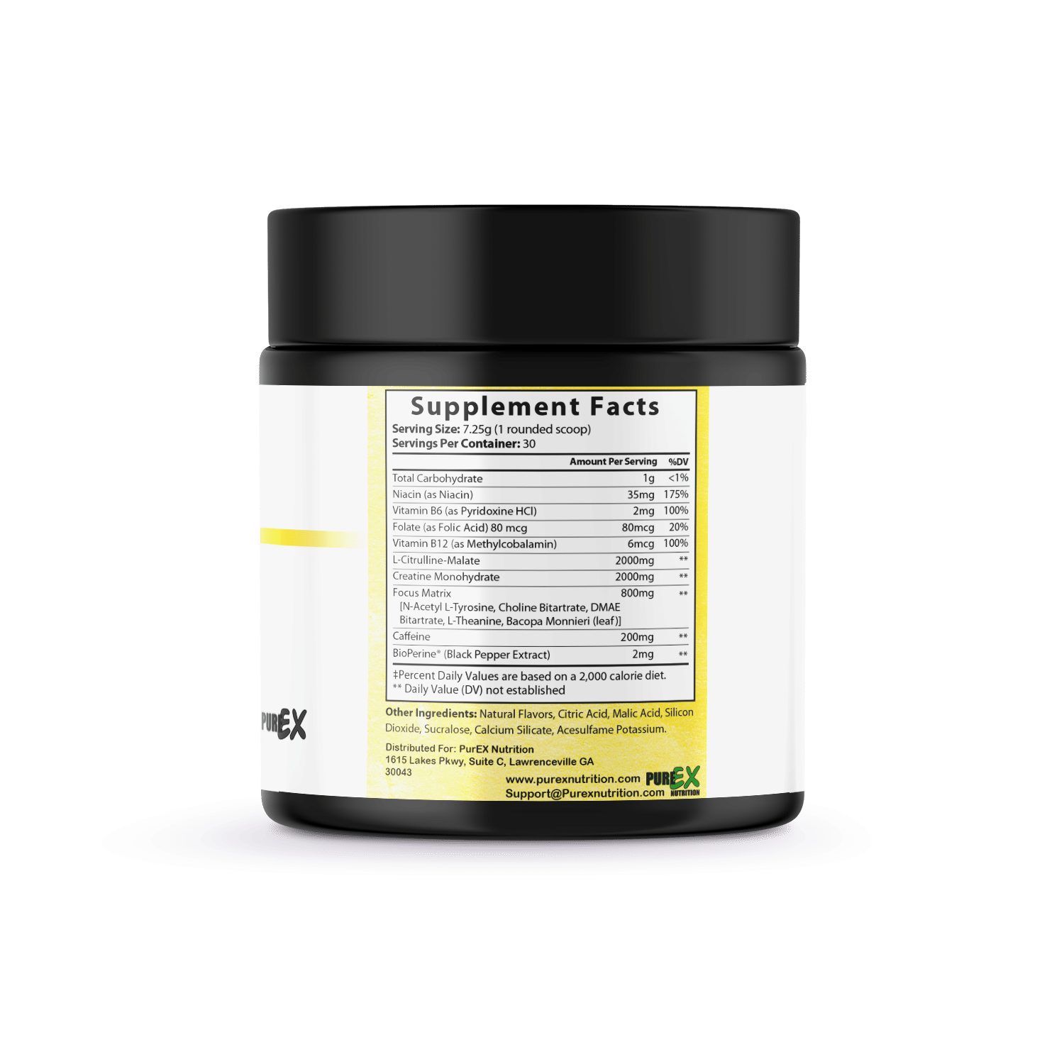 We realize that energy crashes are a problem with caffeine. So we backed that up with B vitamins to facilitate real energy production. These are the main nutrients that facilitate the body producing ATP. ATP is short for Adenisine Tri-Phosphate, but to keep things simple ATP is the actual usable form of energy in the body. It requires B vitamins for the body to make this process happen. So after the caffeine kick in, you’ll be ripping apart calories making real energy as well! We also added citrulline malate to increase blood flow for the delivery of all your nutrients when you are working out.