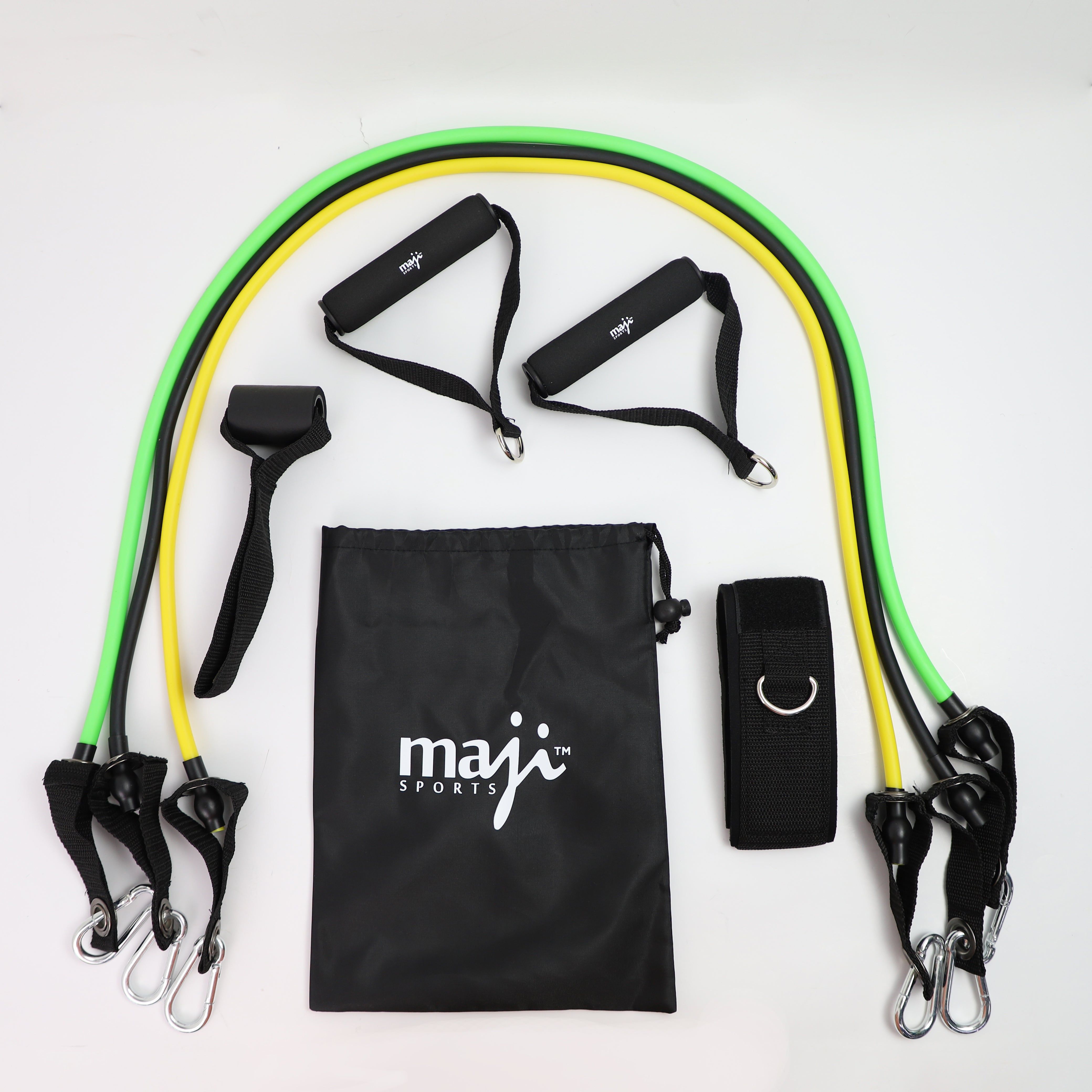 Introducing the FULL BODY STRENGTH & CORE BUNDLE, your ultimate fitness arsenal designed to sculpt, strengthen, and revitalize your body, whether at home or on the go. Meticulously crafted to target and tone your pecs, shoulders, biceps, triceps, abs, and legs, this three-piece set is the quintessential travel companion for fitness enthusiasts of all levels looking to enhance their health and wellness journey.First in the lineup is the revolutionary rotating push-up bar, a game-changer in upper-body workouts. With its smooth rotation mechanism, this bar reduces wrist strain while amplifying the engagement of your chest and arm muscles. Each push-up is transformed into a dynamic exercise that not only strengthens the muscles but also promotes joint health. The non-slip base ensures stability, allowing you to focus on form and maximize every rep.Elevate your core workouts with the sleek ab wheel, a potent tool designed for those who dare to challenge their abdominal wall. As you roll out and pull back, the wheel's sturdy construction and ergonomic handles provide the confidence to extend fully, engaging not just the abs but also the hip flexors and lower back. Its compact size belies its power, making it an easy addition to your luggage, ready to unleash a gut-busting workout wherever you find yourself.Completing this bundle is a set of three versatile resistance bands, each offering a different level of tension to accommodate your strength level and desired intensity. Whether you're doing a light warm-up or a high-resistance training session, these bands are the key to unlocking a full spectrum of exercises. They can intensify your squats, press your pecs, and isolate your biceps and triceps, offering a full-body workout that's both efficient and effective. Made from durable, skin-friendly materials, they're designed to endure the rigors of your most intense sessions.Together, the FULL BODY STRENGTH & CORE BUNDLE is more than just exercise equipment; it's a commitment to your health. Lightweight and portable, it empowers you to turn any space into a personal gym. Its versatility makes it ideal for HIIT, CrossFit, yoga, and Pilates enthusiasts alike.