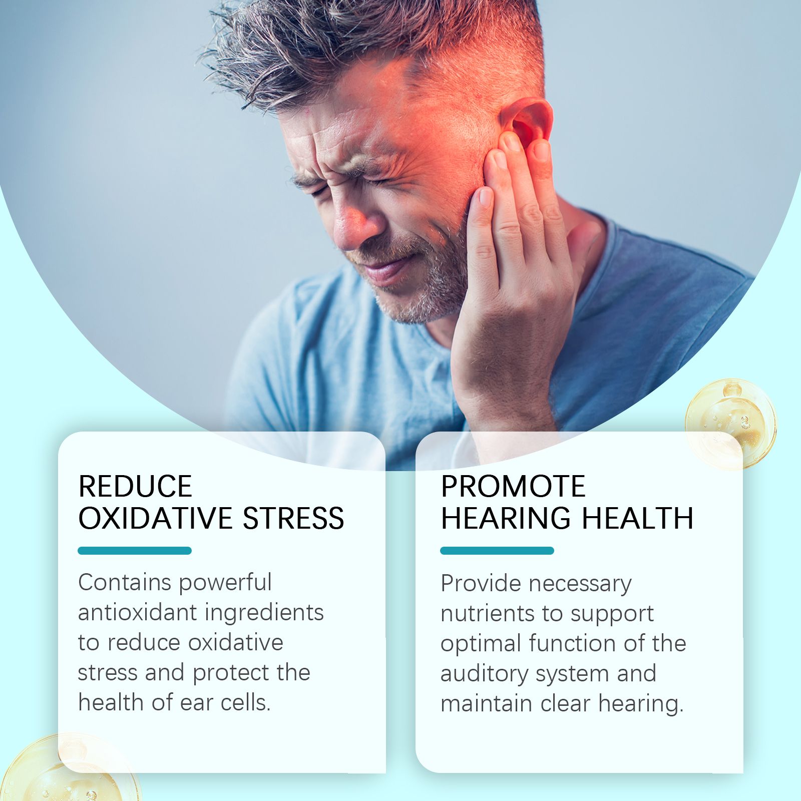 Our best ear-protection capsules contain gelatin, glycerin and vitamin C. It reduces oxidative stress and protects ear cell health. Its use is very simple: 2 times a day, 1 to 2 capsules each time. Provide the necessary nutrients to support the optimal function of the auditory system and maintain clear hearing.