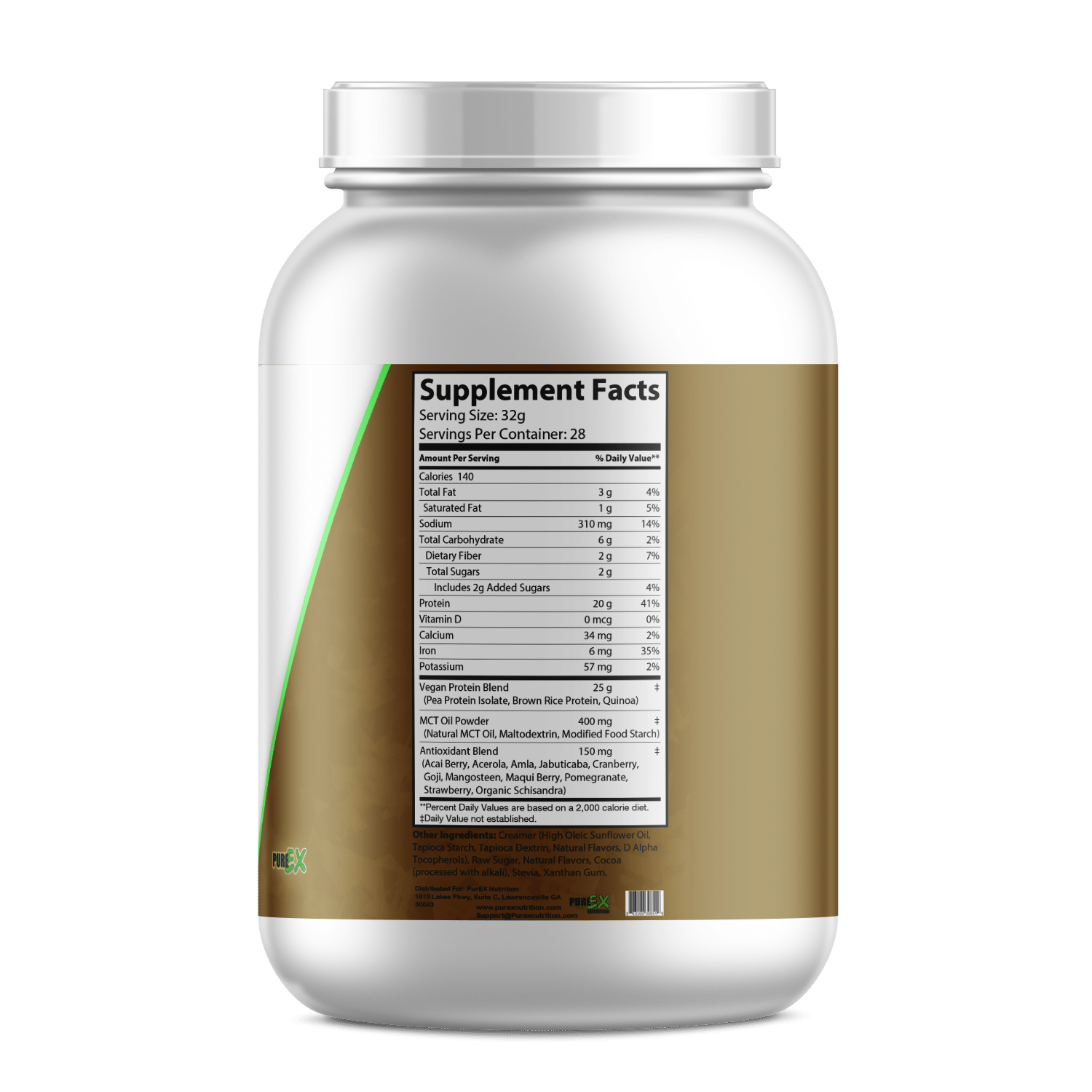 Pea protein absorbs really well in the body, to ensure a complete protein profile with all the essential amino acids, we blended it with brown rice protein and quinoa protein. Brown rice contains fiber which will help you stay fuller for longer as well as help with regular bowel movements and gut bacteria health. With the addition of MCT (medium chain triglyceride) you also get the benefit of additional healthy fats. This can help if you find yourself lacking in healthy fats in your diet.